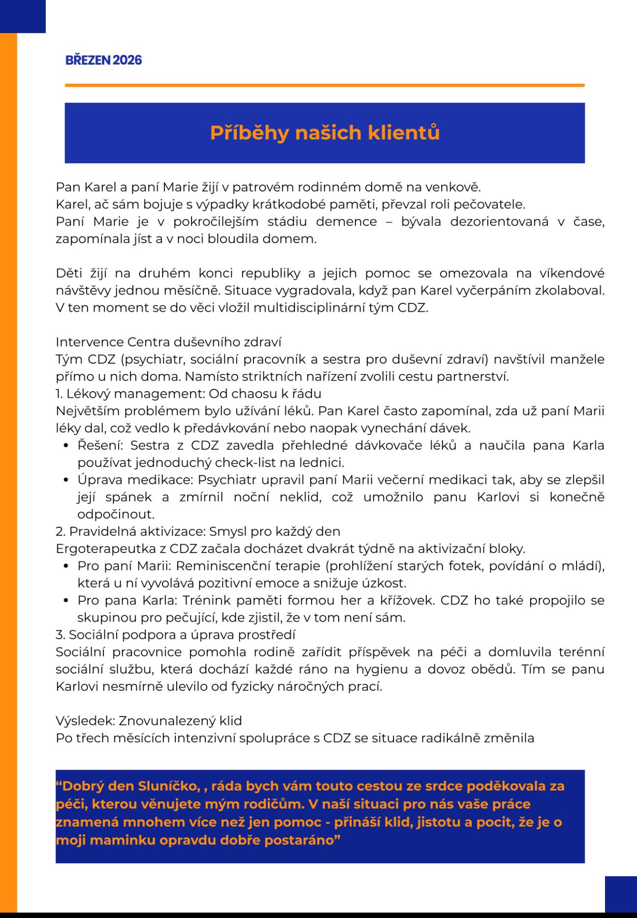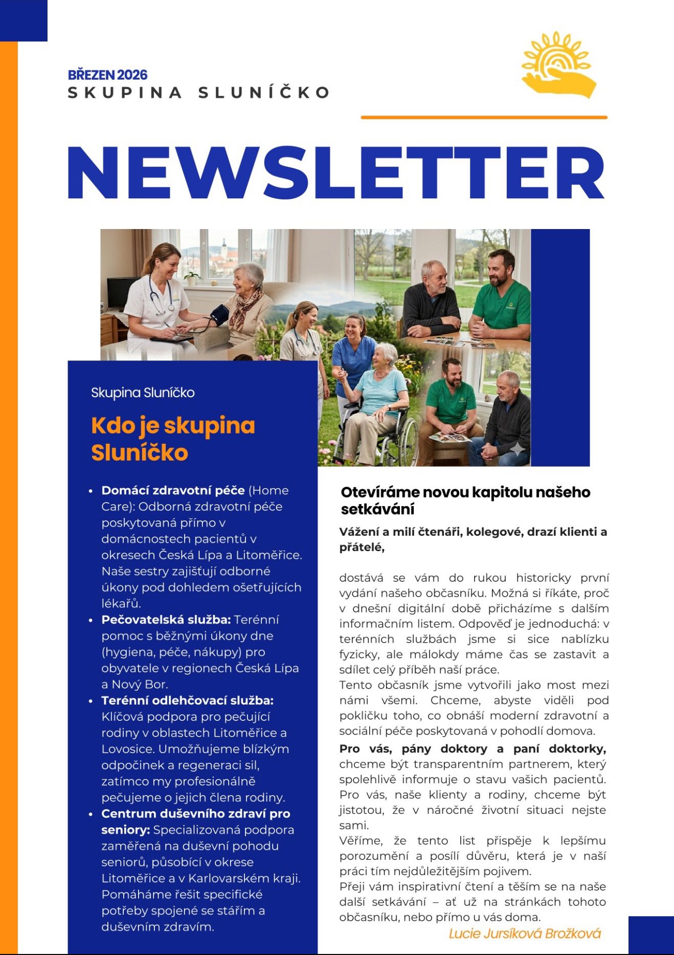 Otevíráme novou kapitolu - online občasník, který bude pravidelně přinášet přehled novinek, změn a plánovaných aktivit v oblasti našich služeb. Jeho cílem je zlepšit informovanost, sdílet důležité aktuality a posilovat spolupráci se všemi stakeholdery. Věříme, že tento formát přispěje k větší transparentnosti i lepšímu propojení. PDF verzi si můžete prohlédnout a stáhnout na tomto odkaze.